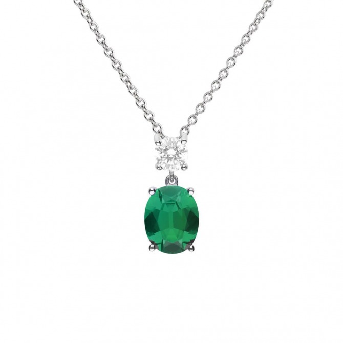 This elegant oval drop pendant is perfect for adding extra sparkle and colour to your outfit. Featuring emerald green and clear Diamonfire zirconia stones (5.23ct) and an extendable chain length of 43cm-45cm, this pendant makes the perfect addition to your occasion wear! Why not add the matching earrings and ring for a complete style too!