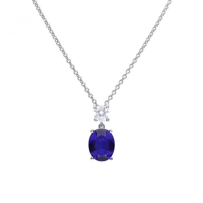 This beautiful oval sapphire blue zirconia drop necklace is perfect for adding that extra sparkle to any outfit. Featuring Diamonfire cubic zirconia stones which are cut specially with 57 facets just like a real brilliant cut diamond. The product also is made from sterling silver with a triple plated finish of palladium, platinum & rhodium for an almost life-long tarnish protection.