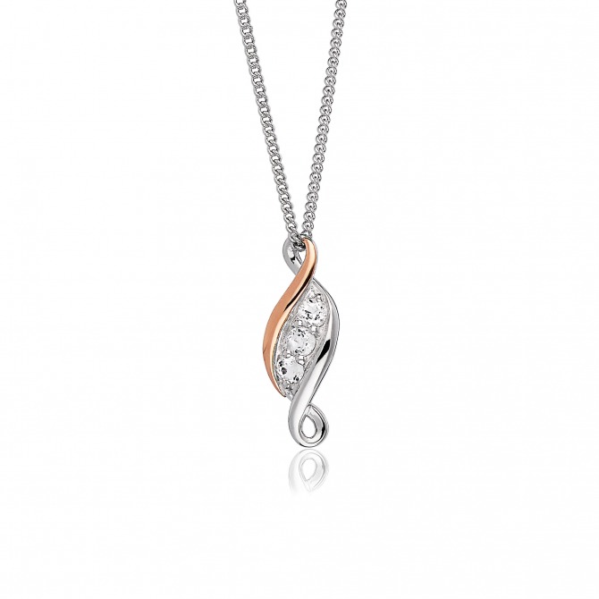 This spectacular pendant is inspired by a true love, and having someone who understands your past, supports your present, & encourages your future. Each beautiful white topaz represents your past, present and future, and is cradled in sterling silver and 9ct rose gold. Available on a 22" (55.8cm) chain that can also be worn at 20" (50.8cm) and 18" (46cm).