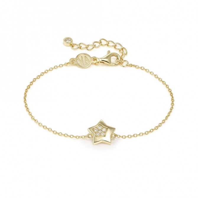 Let your jewellery take you to cosmic levels with the Nomination Petit Sparkle Star Chain Bracelet, a dainty golden piece adorned with a glittering cubic zirconia star for effortless elegance. Expertly crafted from gold-plated sterling silver, one side of the star features shimmering stones for a subtle touch of glamour. The adjustable chain, measuring 14-19CM, ensures a perfect fit for any wrist. Presented in Nomination’s signature gift box, it’s a charming choice for birthdays, special occasions, or simply as a treat for yourself. Explore the Petit Sparkle collection to discover more delicate designs you’ll love.