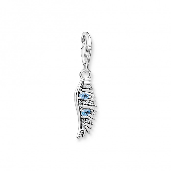Spread your wings: The charm pendant is made of slightly blackened 925 Sterling silver. Shaped like the stylised wings of the mystic phoenix bird, the pendant features many details. The wing feathers are crafted on two levels and decorated by hand with zirconia stones such as gemstones in white and blue. The blue stones are faceted within the elegant, drop shaped diamond cut. Provided with a lobster clasp, the phoenix wing charm can be worn with Charm Club necklaces or bracelets and combined with further charms – perfect for diverse and personal jewellery creations.