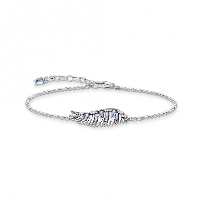 Mythic symbolism: This women’s bracelet is designed with love for detail, made of slightly blackened 925 Sterling silver and provided with an extension chain. Its end is decorated with an aquamarine blue stone within a drop-shaped diamond cut. The highlight of this valuable jewellery is a small, stylised wing of the mystical phoenix bird. The wing feathers are elaborately arranged on two levels and set by hand with 30 zirconia and gemstones in white and aquamarine blue. The aquamarine blue stones sparkle within the elegant, drop-shaped diamond cut. The bracelet can be adjusted in its length from 16 to 19 cm onto the wrist. It resembles a perfect gift idea for special occasions.