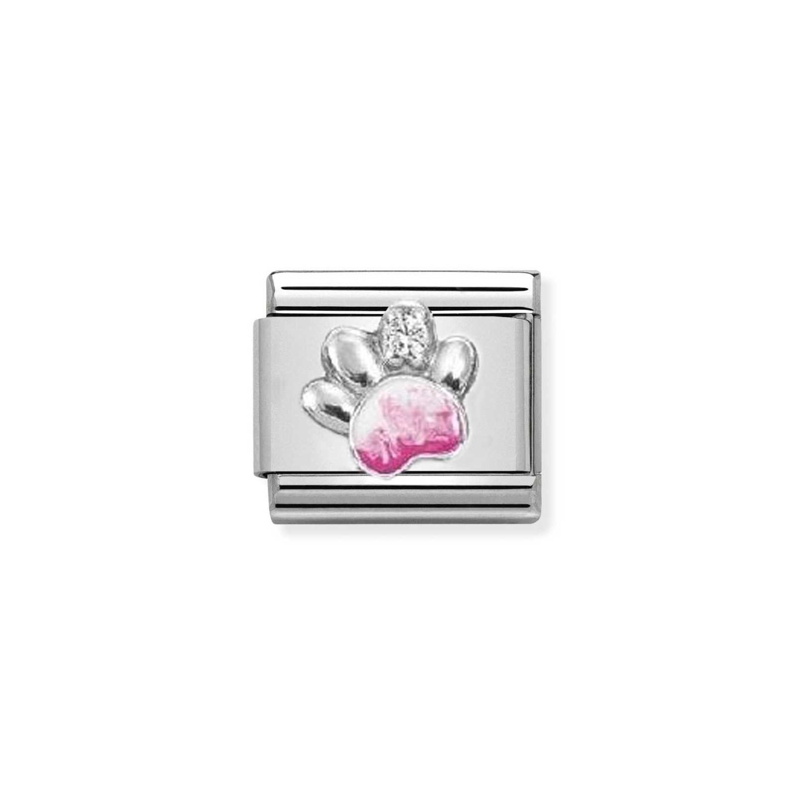 Original Nomination Classic Link in stainless steel with raised Pink Paw Print with CZ symbol in sterling silver and Pink enamel. White Cubic Zirconia detail is applied by hand. This fun symbol that represents our four-legged friends is a great way to show off the unconditional love we have for our pet.