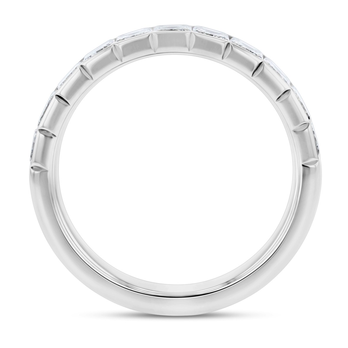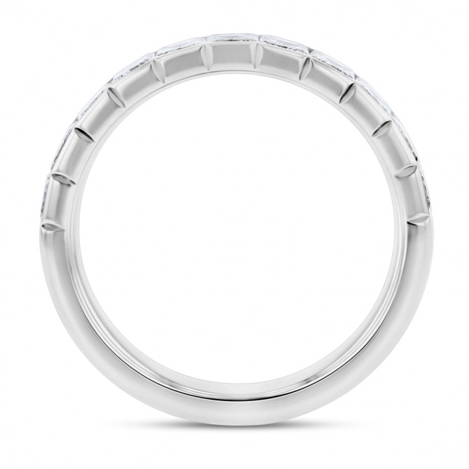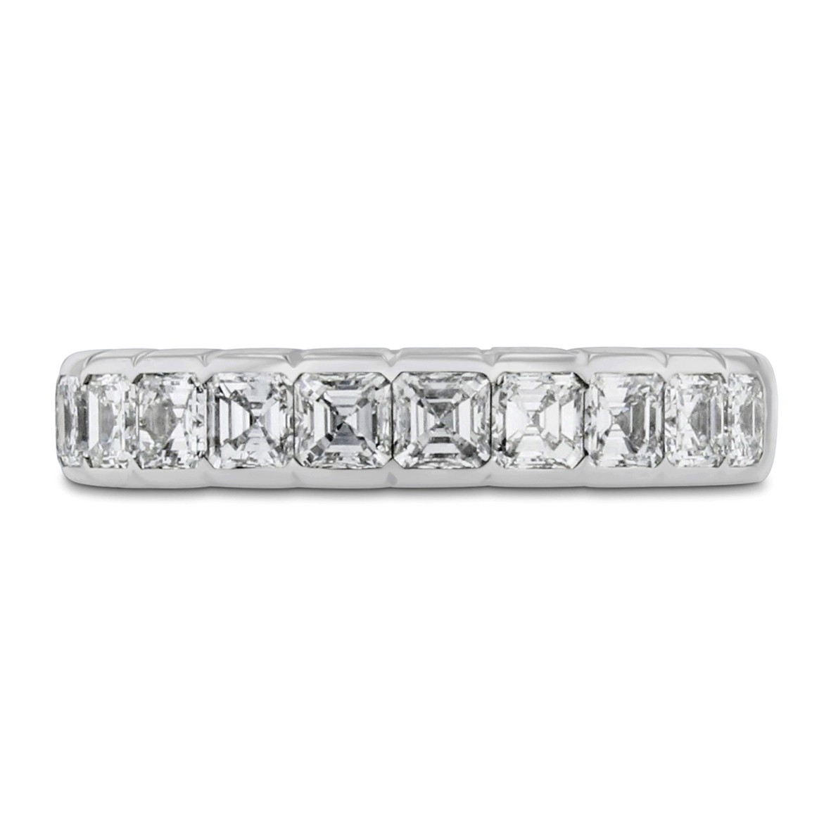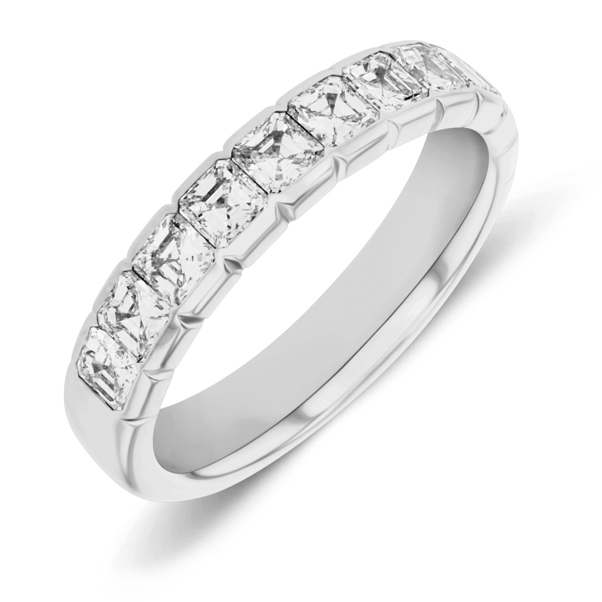 Platinum asscher cut diamond half eternity ring. Set with 11 .11ct diamonds making a total carat weight of 1.21ct.