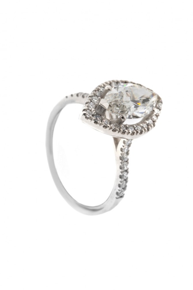 This Platinum Marquise cut 1.52ct Diamond ring is set with a Diamond Halo and Diamond Shoulders.