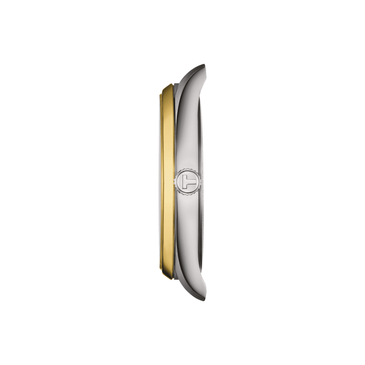 The best-selling Tissot PR 100 remains true to its name: precise (P), robust (R), and water-resistant to a pressure of 10 bar (100 m). Made from stainless steel, this new design offers a large dial thanks to the narrow bezel, for an elegant and minimalist look. The SuperLuminova®-coated hands enable precise reading even in the dark. This Tissot PR 100 Quartz model features a 40mm stainless steel case, a deep blue dial and a bicolour gold PVD and stainless steel bracelet for a touch of elegance that will make the difference.