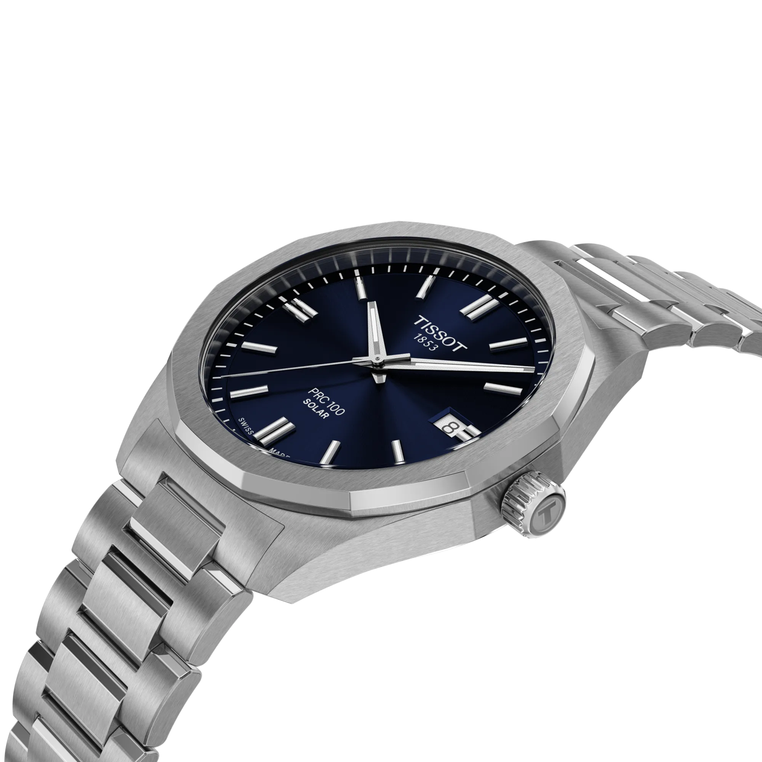 First introduced in the mid-2000s, the PRC 100 was recognised for its striking design, carving out its place in Tissot’s collection. Today, it returns with a pioneering Lightmaster Solar Quartz movement, harnessing photovoltaic energy to fuel every second. With its 39mm stainless steel case and bold dodecagonal bezel, this model exudes confidence. Beneath its sleek sapphire crystal lies a solar-powered quartz movement, designed to recharge effortlessly from both natural and artificial light. The End of Energy indicator ensures optimal performance, while the compatibility with our 20 mm straps allows wearers to personalise their style, whether through classic leather or modern Milanese options. Discover this 39mm solar-powered watch with its stainless-steel case and matching bracelet.