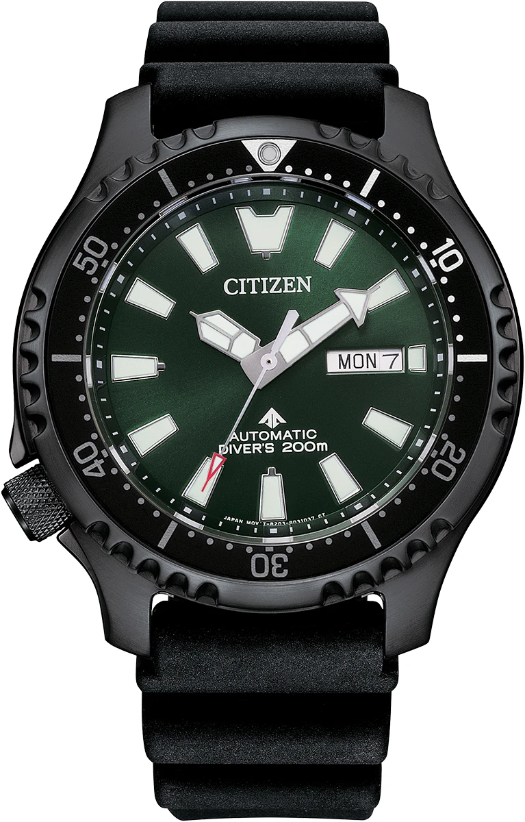 The past becomes the present with the new Promaster Dive Automatic men’s watch by Citizen. Going deeper into the history of the original version of this diving watch, it was released in 1989 for the new generation of dive watch enthusiasts. A design element that stands out is the distinctive, serrated bezel design that was inspired by a fugu, the Japanese name for pufferfish. Featuring a 3-piece, 44mm case, sapphire crystal, and a black polyurethane strap, the black rotating bezel with a black easy grip aluminium ring surrounds the green dial and luminous hands and markers, while the case back features an engraving of a pufferfish. This advanced automatic watch features a circa 42 hour power reserve, is ISO compliant with a screw-down crown and water resistance to 200 metres. Presented in an exclusive collector’s dive tank style box.