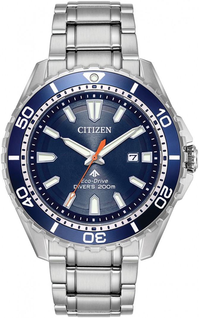 Proof that a dive watch can be fun and functional with the Citizen ISO-compliant Promaster Diver. With Eco-Drive technology, it is powered by light and never needs a battery, so you'll never need to open your caseback or compromise your dive again. Styled in stainless steel with an azure blue aluminium bezel and matching azure blue dial, one-way rotating elapsed time and water resistance to 200 metres.