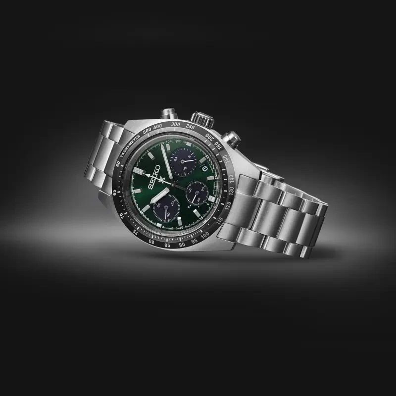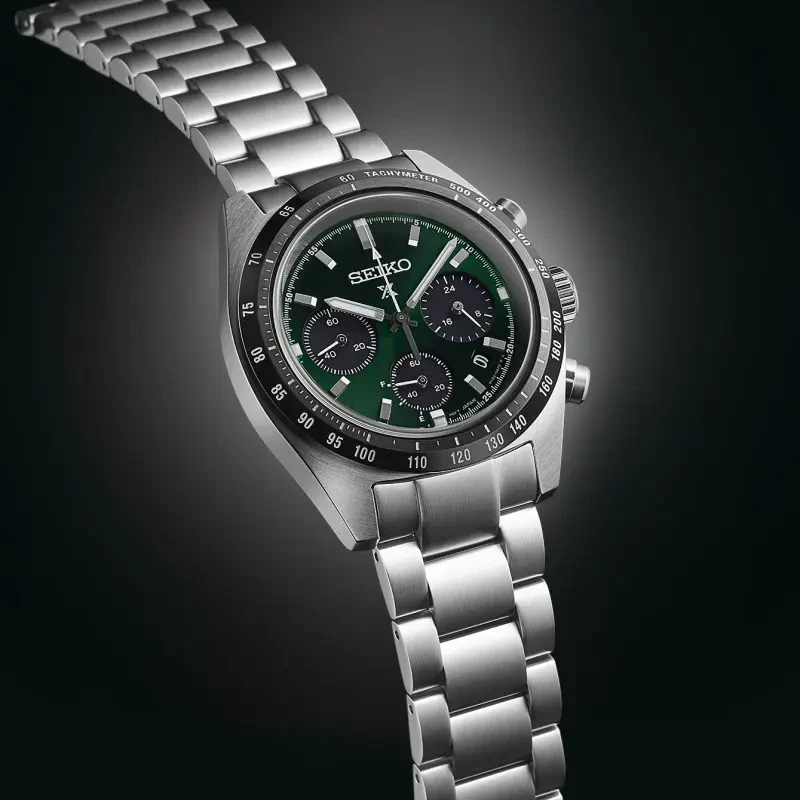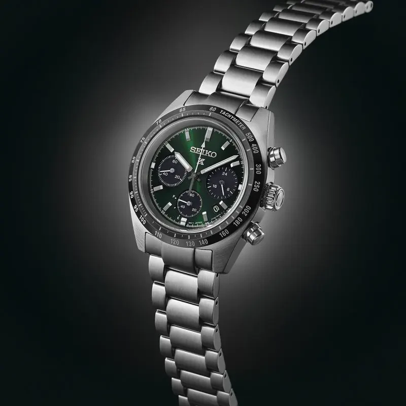 This Prospex Speedtimer features a dark green dial with a captivating and lustrous radial finish. it inherits the design looks of the classic Seiko chronographs from the 60s and 70s, whilst introducing modern twists.