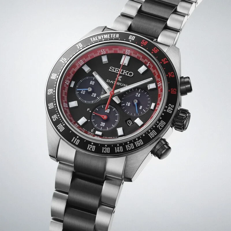 First introduced in 1969, the ‘Speedtimer’ was a major innovation milestone in Seiko’s watchmaking heritage. Nissan Motor Corporation’s ‘Datsun,’ Japan’s leading sports car brand, launched in the same year.