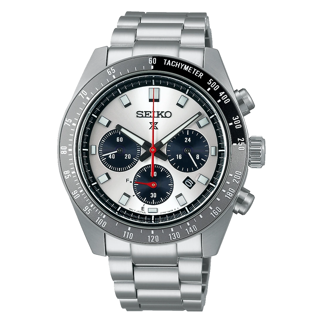This solar-powered chronograph timepiece is from the Prospex Speedtimer watch collection which represents Seiko’s professional timekeeping heritage.