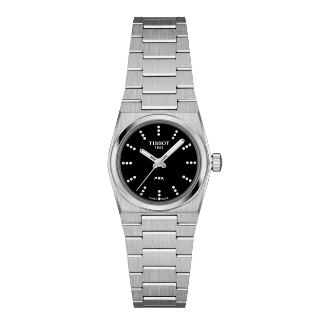 A perfect combination of 70’s charm and refined design, the new PRX 25mm is a versatile standout. This model is a true reflection of craftsmanship and innovation. Powered by a reliable quartz movement with an EOL function, it provides the convenience of a battery-powered timepiece with minimal maintenance. The watch features a sapphire crystal, a 316L stainless steel case, and water resistance up to 10 bar, ensuring durability for everyday wear. Its trendy modern-vintage aesthetic design makes it a standout accessory, while its high-quality construction guarantees it will remain both fashionable and functional for years to come. Discover this mini version of our iconic PRX with its stainless-steel case and bracelet, deep black dial and diamond indexes.