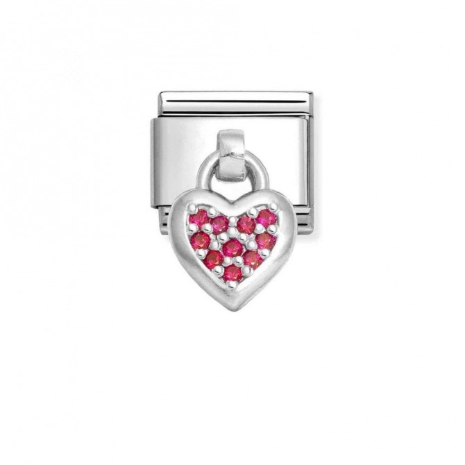 Original Nomination Classic Link in stainless steel and sterling silver with Heart pendant symbol with Red Cubic Zirconia. The coloured Cubic Zirconia used in this item may be subject to very slight variations in colour. Made in Italy. Choose this Link for someone you love!