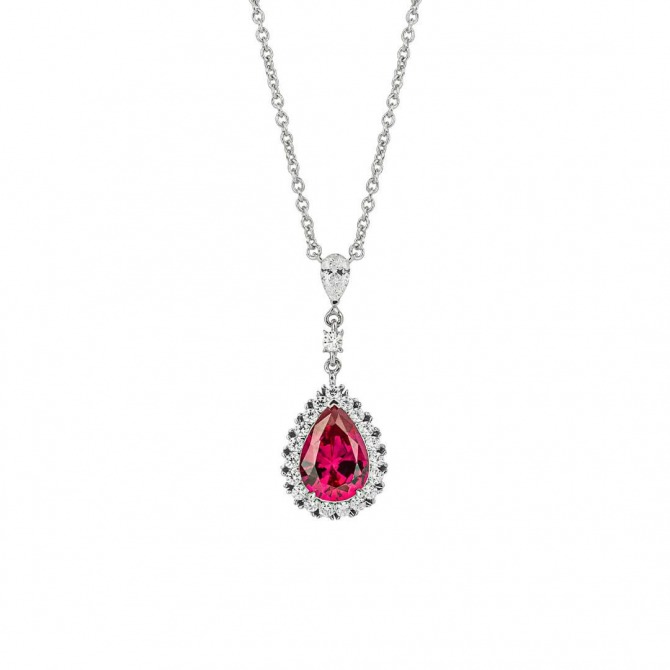 This regal teardrop and pave surround drop necklace is perfect for adding a pop of colour to your outfit! Set with ruby red and clear Diamonfire zirconia stones (total 2.72ct) and featuring an extendable chain length of 40cm-45cm, this necklace will make a wonderful gift for anyone who loves to feature a colourful sparkle in their style. Why not complete the look with the matching earrings and ring for a co-ordinated approach.