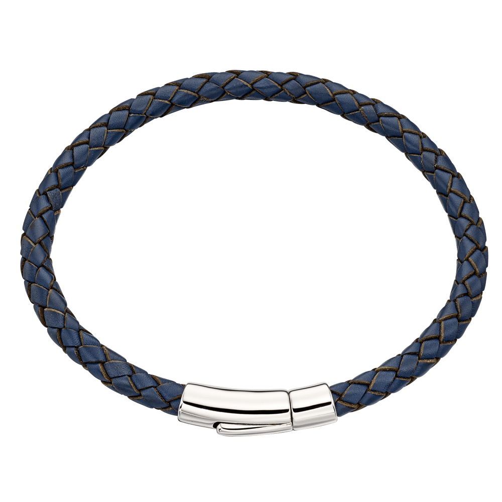Perfect to match to our Hugo Boys bracelet for a Daddy & Me set. This Mens Navy Leather bracelet has a hinged sterling silver clasp that is perfect for Engraving with our Free service. It also comes with complimentary Gift Box & gift.