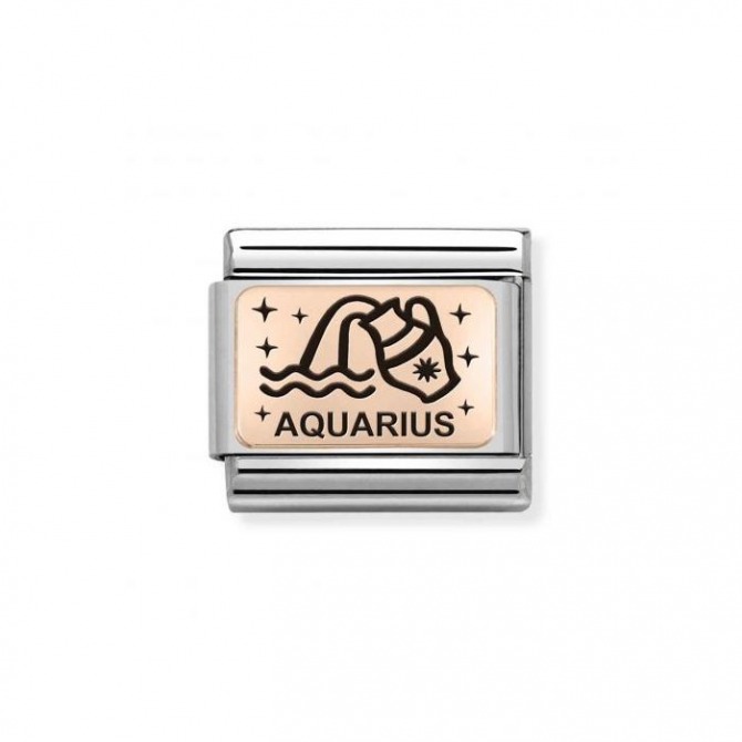 Original Nomination Link for Composable Classic Bracelets in stainless steel and 9K rosegold and Black enamel and AQUARIUS Zodiac symbol. Made in Italy. This Link is a perfect gift for the Aquarius in your life.