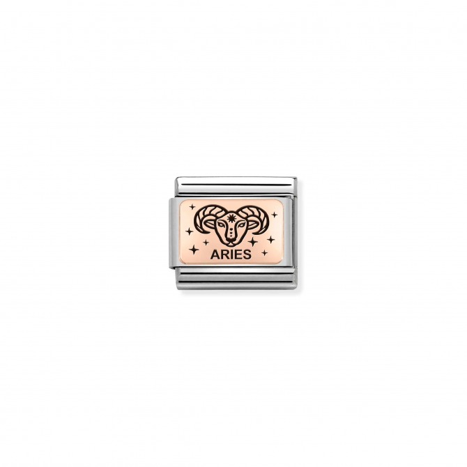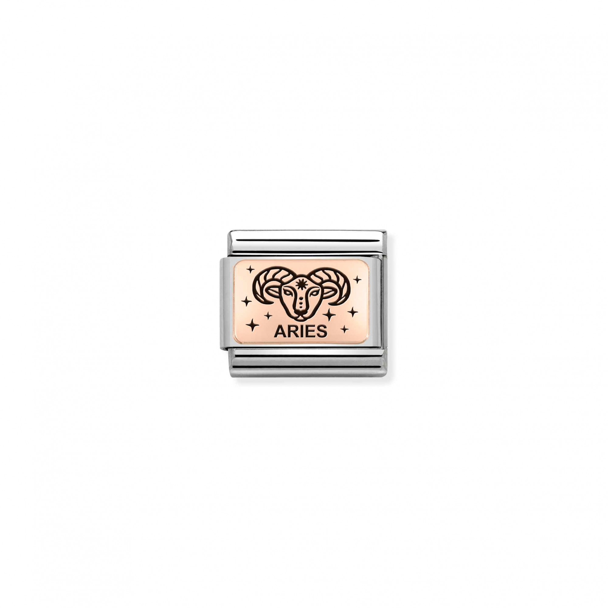 Original Nomination Link for Composable Classic Bracelets in stainless steel and 9K rosegold and Black enamel and ARIES Zodiac symbol. Made in Italy. This Link is the perfect symbol for one of the most courageous of Zodiac signs.