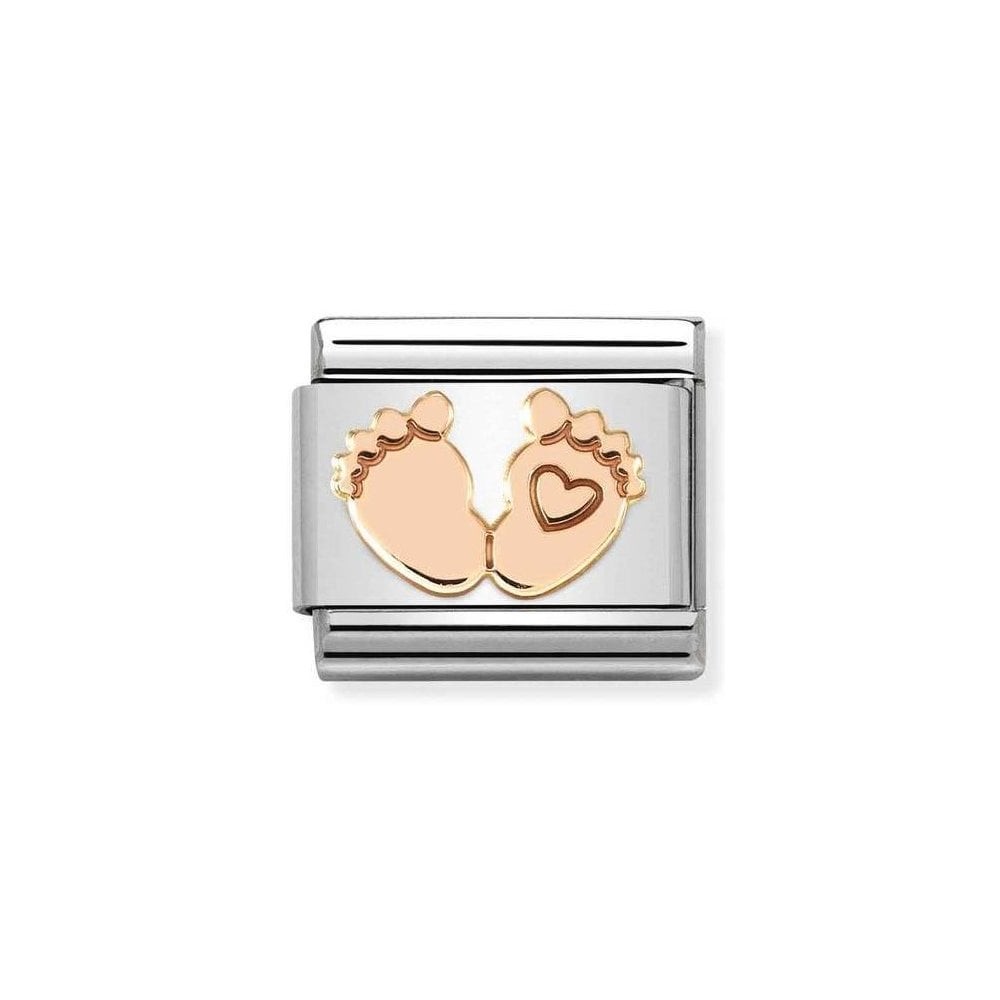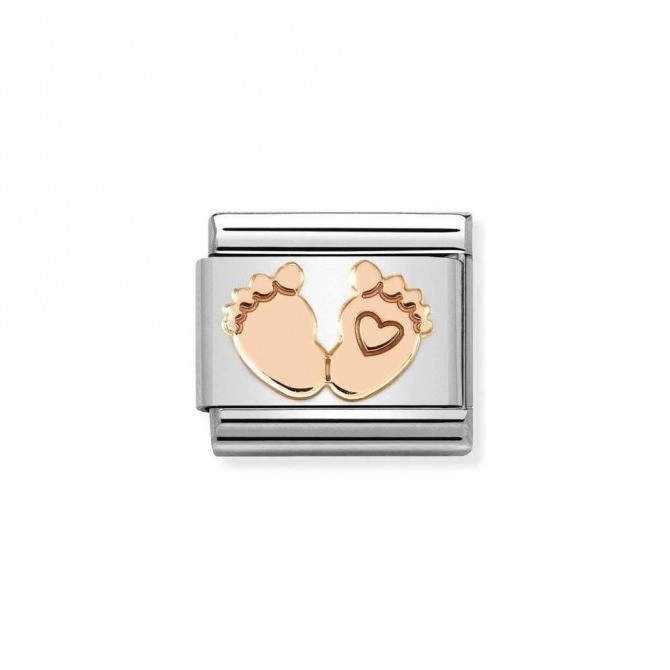 Original Nomination Link for Composable Classic Bracelets in stainless steel and rosegold and Baby Feet symbol. Made in Italy. Celebrate a new arrival in the family with this perfect gift for the new Mum - a Link to welcome the little one!