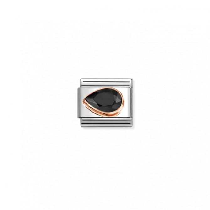 Original Nomination Classic Link in stainless steel and 9K rose gold with Black Cubic Zirconia Drop, Left. You can also pair it with the matching Right Drop Link. Made in Italy. Make your bracelet even more striking by adding on these Links!