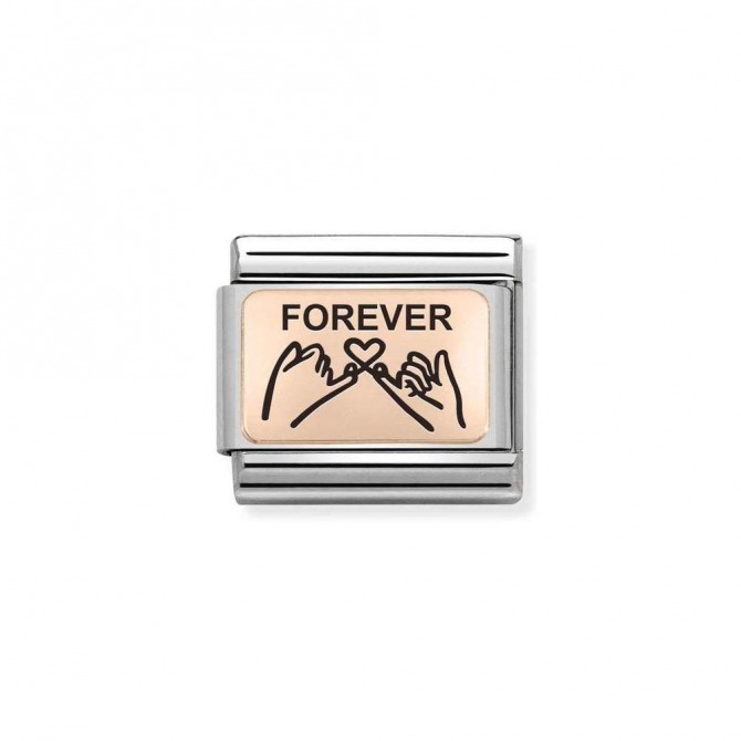 Original Nomination Link for Composable Classic Bracelets in stainless steel with rosegold FOREVER Pinky Promise symbol with Black enamel. Made in Italy. One Link for you and One Link for your friend and promise to always stay friends FOREVER!