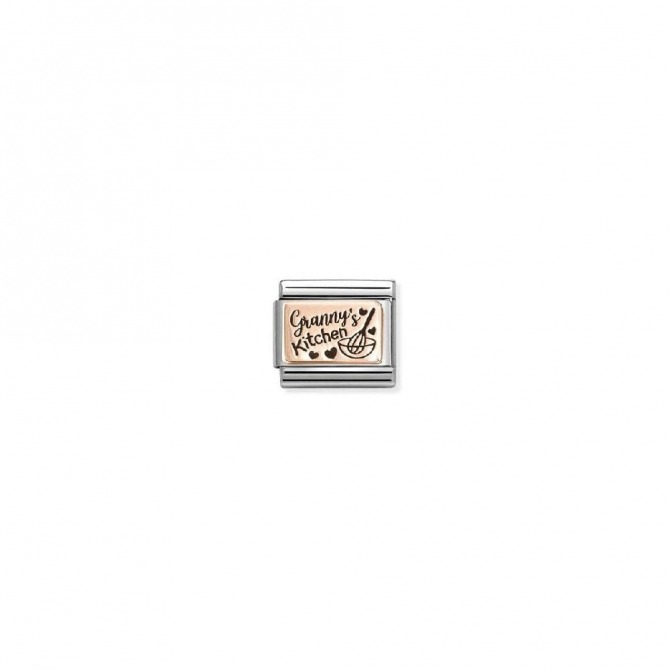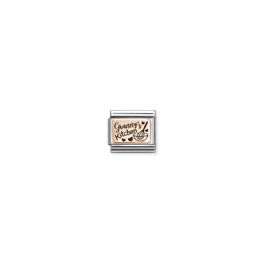 Original Nomination Classic Link in stainless steel and bonded rose gold decorated plate with GRANNY’S KITCHEN and Whisk with Bowl and Hearts in black enamel. This is a precious gift to the one who raised you with love and adored making you delicious treats that you remember with joy to this day.