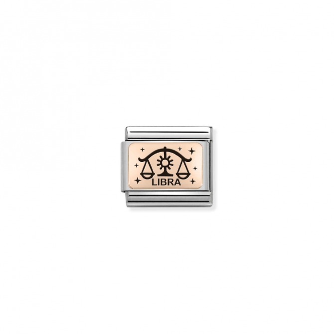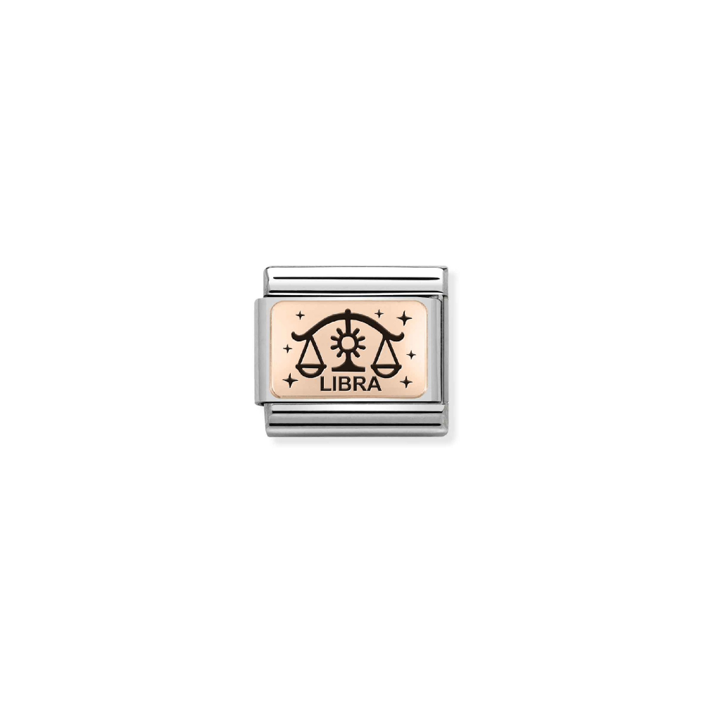 Original Nomination Link for Composable Classic Bracelets in stainless steel and 9K rosegold and Black enamel and LIBRA Zodiac symbol. Made in Italy. This Link is the perfect gift for elegant and refined Libra.