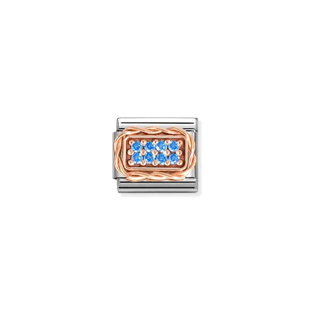 Original Nomination Classic Link in stainless steel and 9K rose gold with Light Blue Cubic Zirconia pavé. The coloured Cubic Zirconia used in this item may be subject to very slight variations in colour. Made in Italy. There is nothing like a personalised bracelet to wear and treasure forever!