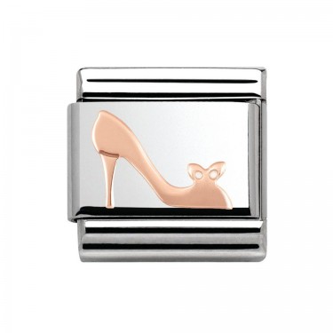 Original Nomination Classic Link in stainless steel and 9K rose gold with Nativity symbol with black engraving. Made in Italy. This Link is the perfect gift for anyone who looks forward to Christmas all year long.