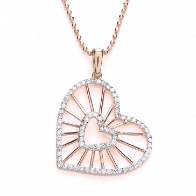 Sterling Silver with Rose Gold Plate and Cubic Zirconia Open Heart Pendant on an 18" Chain.