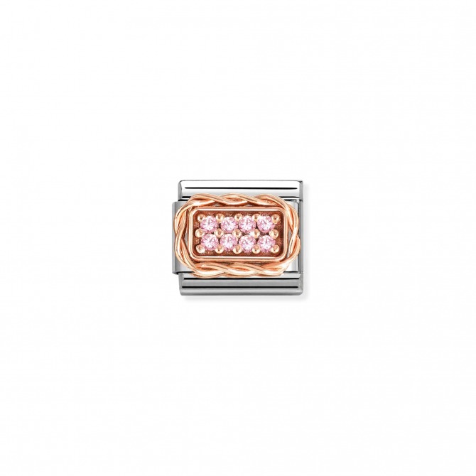 Original Nomination Classic Link in stainless steel and 9K rose gold with Pink Cubic Zirconia pavé. The coloured Cubic Zirconia used in this item may be subject to very slight variations in colour. Made in Italy. Choose your favourite colour and super charge your bracelet with pavé in that colour!