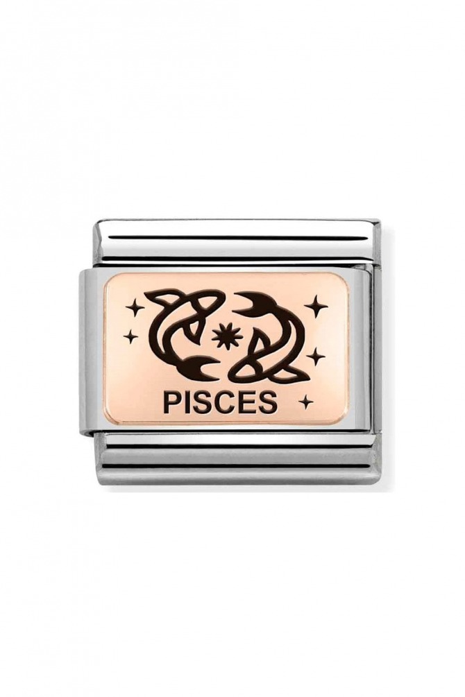 Original Nomination Link for Composable Classic Bracelets in stainless steel and 9K rosegold and Black enamel and PISCES Zodiac symbol. Made in Italy. This Link is a wonderful gift for sensitive and empathetic Pisces.