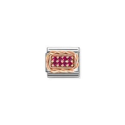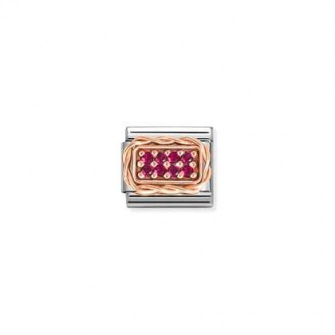 Original Nomination Classic Link in stainless steel and 9K rose gold with Green Cubic Zirconia pavé. The coloured Cubic Zirconia used in this item may be subject to very slight variations in colour. Made in Italy. Add this Link for extra elegance and sophistication.