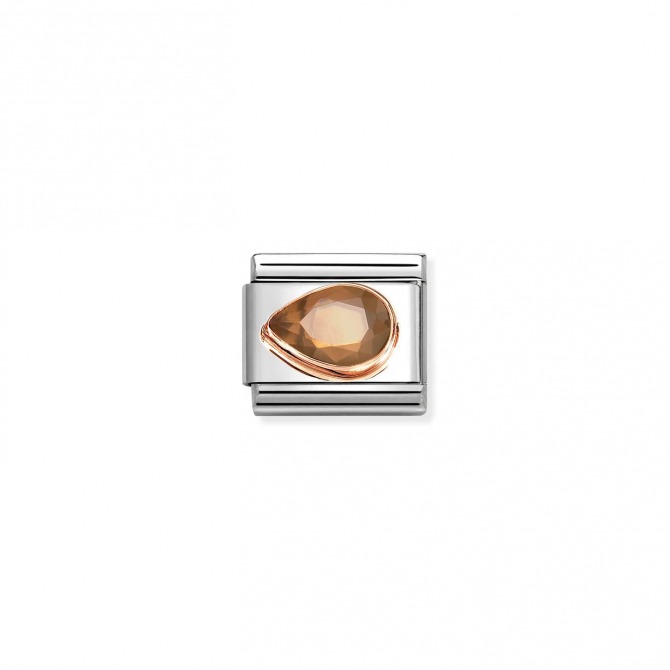 Original Nomination Classic Link in stainless steel and 9K rose gold with Smokey Cubic Zirconia Drop, Left. You can also pair it with the matching Right Drop Link. The coloured Cubic Zirconia used in this item may be subject to very slight variations in colour. Made in Italy. This Link is perfect for anyone who loves a classic but glamorous look.