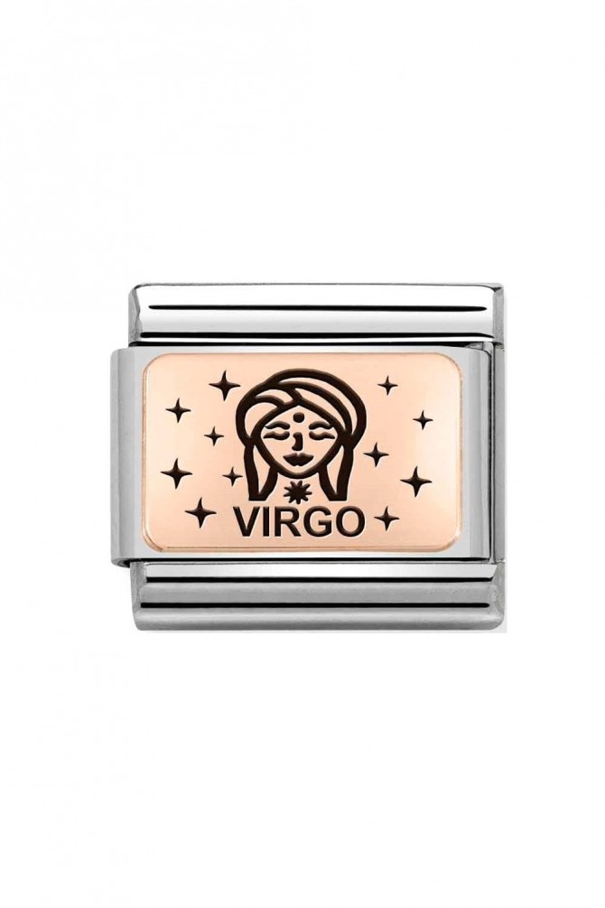 Original Nomination Link for Composable Classic Bracelets in stainless steel and 9K rosegold and Black enamel and VIRGO Zodiac symbol. Made in Italy. This Link is just the gift for Virgin, who is sweet but likes things the Virgo way.