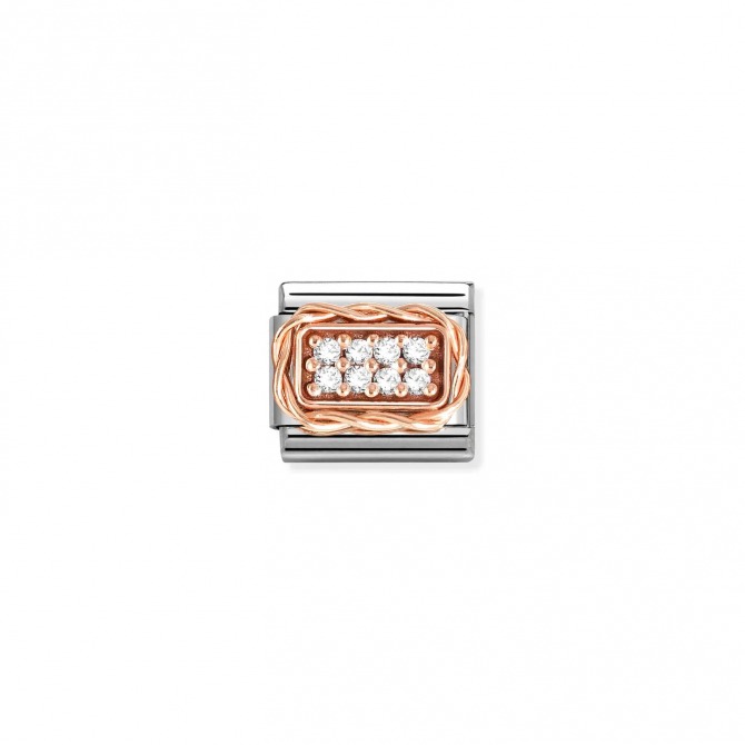 Original Nomination Classic Link in stainless steel and 9K rose gold with White Cubic Zirconia pavé. Made in Italy. Add some brilliant white sparkle to your look.