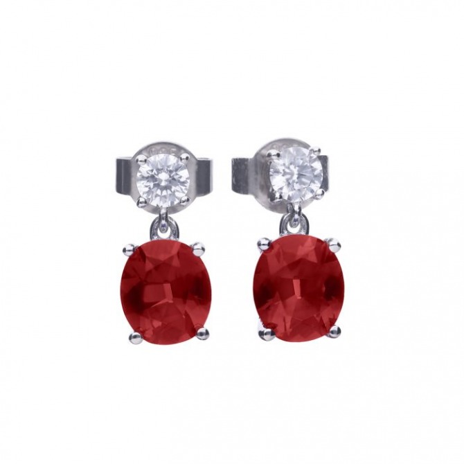 Silver & Ruby CZ Oval Drop Earrings