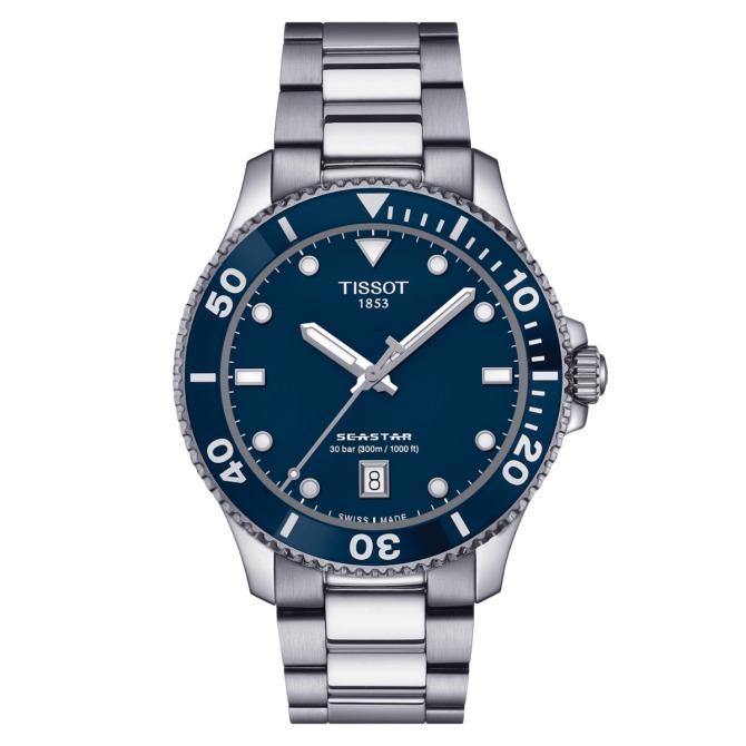 Pairing style with performance, the Seastar 1000 Quartz 40mm will soon become your everyday companion. With its blue dial and silver-accented bezel, this model is a harmonious marriage of elegance and technology, bringing Swiss watchmaking know-how and eternal design together. This versatile case size is designed for people looking for a chic, day-to-night watch, keeping the promise of exceptional technical performance. As with the existing 36mm and 45.5 mm models, the Seastar 1000 Quartz 40mm models take their name from their water resistance certification of 1,000 feet, equivalent to 30 ATM or 300 metres. They offer uni-directional rotating bezels for reliable underwater-activity timing. Low-light legibility is further enhanced by the use of Super-LumiNova® on the watches’ hands and hour markers. The stainless steel bracelet can be changed using Tissot’s easy-to-use quick strap change system, giving the owner the opportunity to choose from a wide range of compatible Tissot straps and bracelets to personalise their watch, suiting their mood or any special occasion.