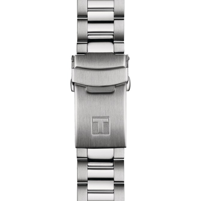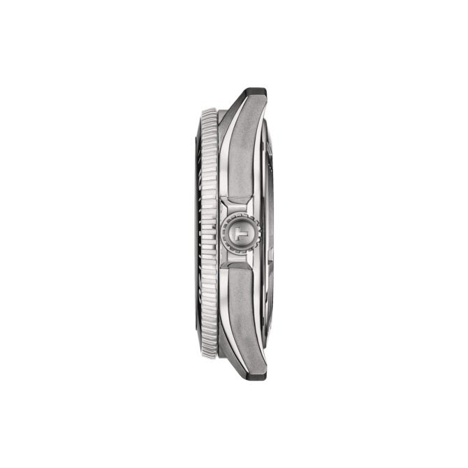 Discover the updated version of one of Tissot's main collections with the new Seastar 40mm Powermatic 80. This new edition has undergone a subtle transformation, incorporating a notch along the edges of the case, resulting in a more compact and sophisticated appearance. This automatic timepiece is the perfect watch for those in search of a sporty yet assertive accessory, offering water resistance up to 1000 feet (300 meters) and improved visibility in dim conditions thanks to the Super-LumiNova® coated hands and hour markers. Discover the unique aesthetic of this stainless steel version with its teal blue gradient dial and contrasting black bezel, following the collection's signature sporty yet bold appeal.
