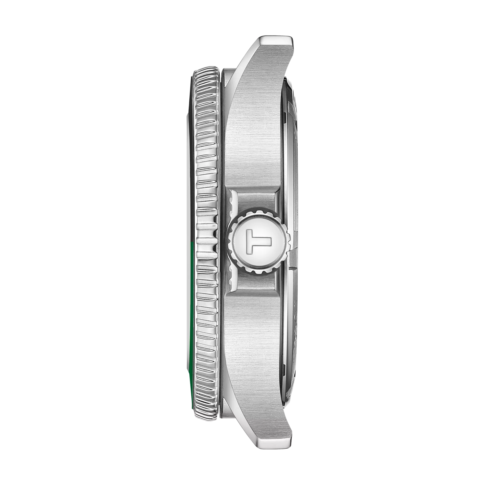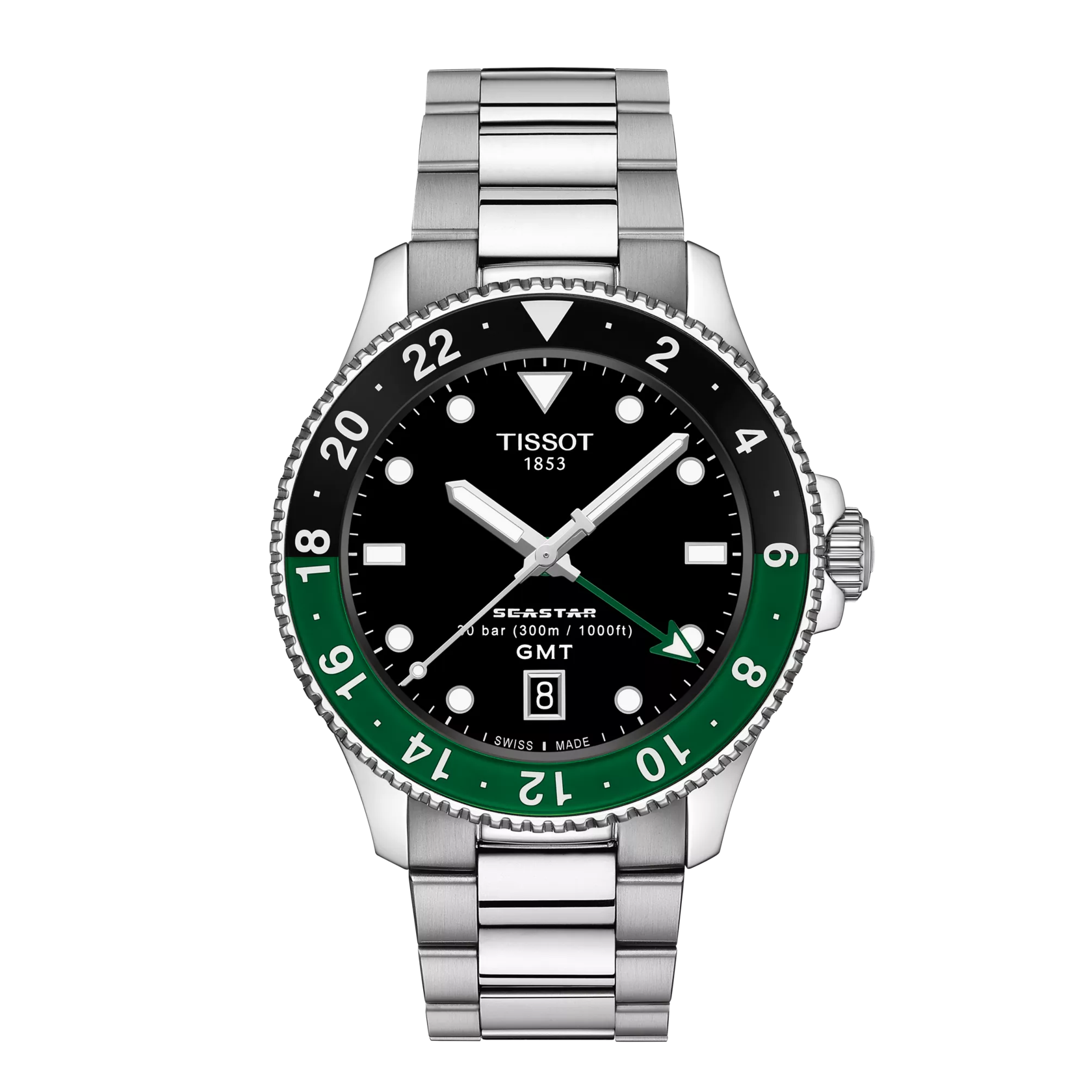 Combining all the elements you would expect in a sports watch, this model is a timepiece you can rely on – on, in or under the water. Impressive water-resistance up to a pressure of 30 bar (300m/1000 ft) is combined with the energy of a Swiss Made quartz movement. With a screw-down crown and case back and Superluminova ® ensuring it is readable in the dark, the Seastar 1000 Quartz GMT is an aquatic ace that truly has it all. The screw-down crown also offers additional protection against knocks. Discover this new diver’s watch, featuring a stainless steel bracelet, a bi-colour black and green bezel, a deep black dial and contrasting white hands and indexes.