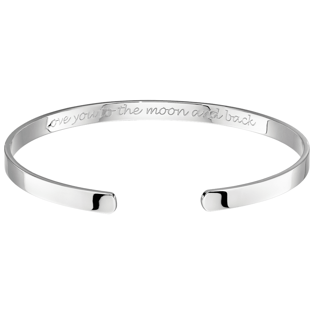 The perfect gift for Mum, or in fact anyone who you’d like to show some Love. Solid and built to last from Sterling Silver. Silver is malleable so the bangle can be slightly adjusted to fit various wrist sizes by gently squeezing the ends closer or opening them slightly wider. Engraved inside with Love You to the Moon and Back. Add your own personal engraving to the outside to make a super special gift, for a new mother, mum on Mothers day or a super special Birthday present . We have a matching Neoma Childs bangle perfect to celebrate the bond between Mother and Child.