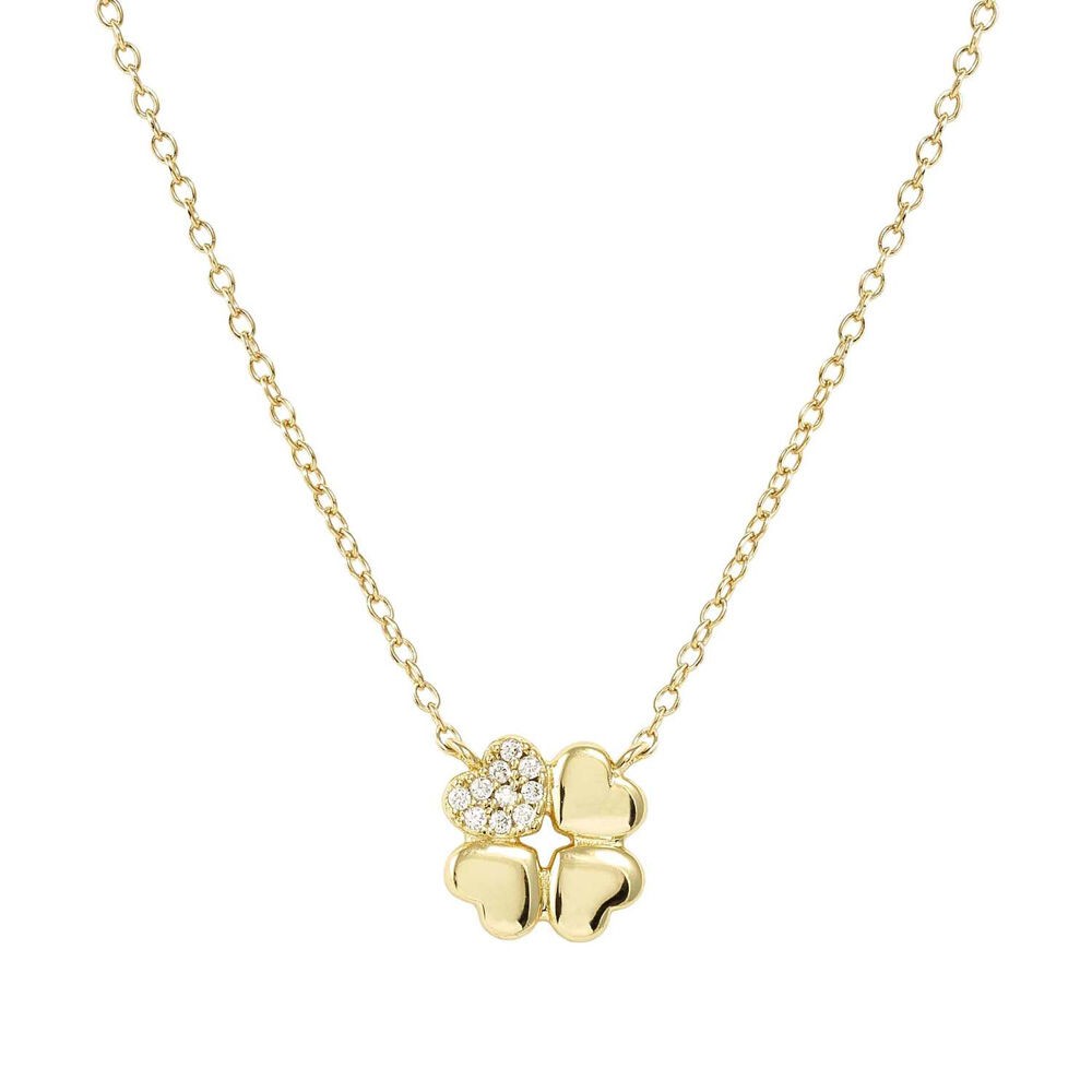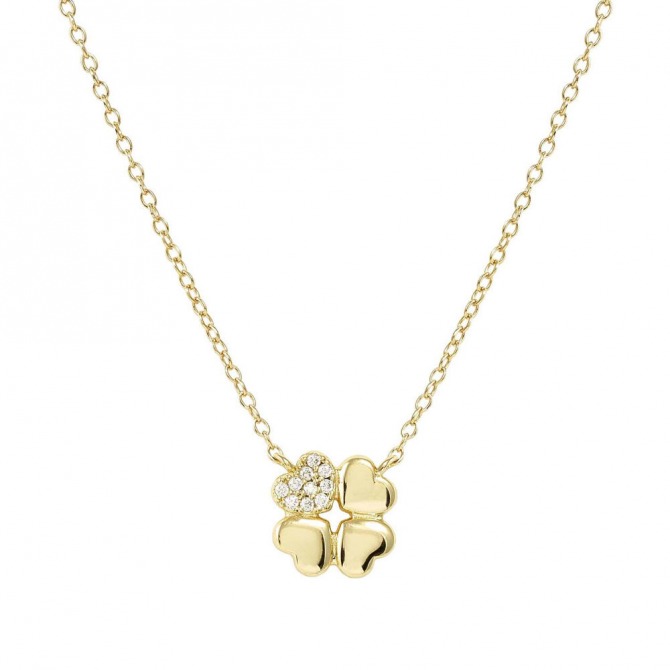 Nomination Petit Sparkle sterling silver with yellow gold plated four-leaf clover cubic zirconia necklace.