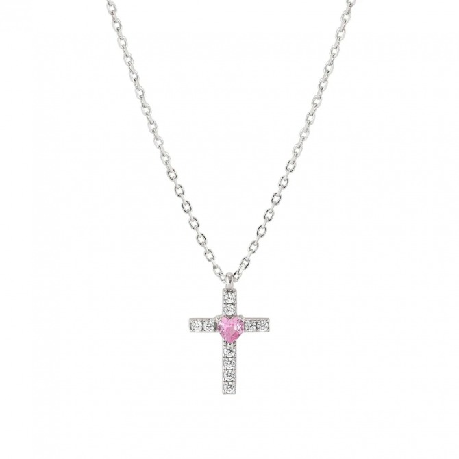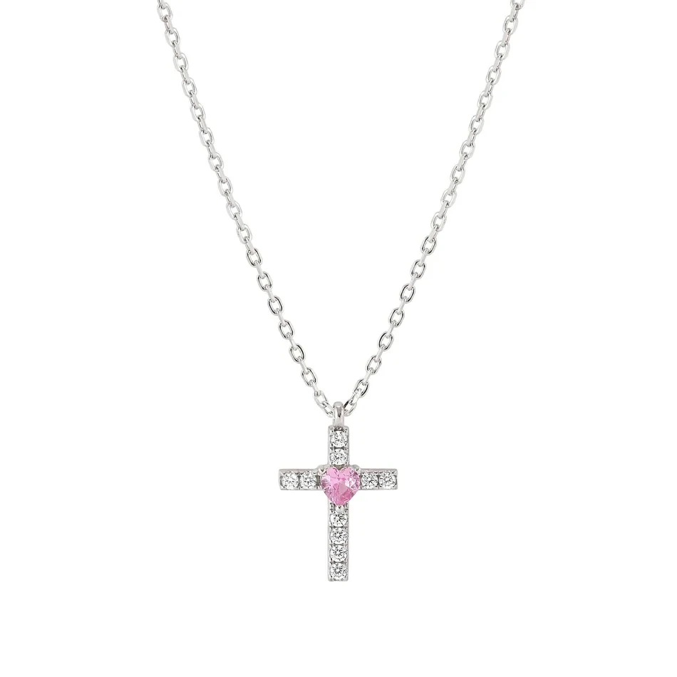 Discover the timeless fashion of the necklace with its Cross pendant that shines thanks to the beautiful Pink Cubic Zirconia at its center. This necklace is the perfect way to celebrate your most precious moments with a touch of classic elegance and powerful symbolism. Let the light surround you with this religious symbol that shines beautifully.