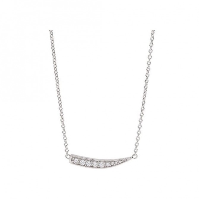 This stunning Sif Jakobs necklace features a simple curved bar design, one end of which is tapered into a point, set with white cubic zirconia stones.