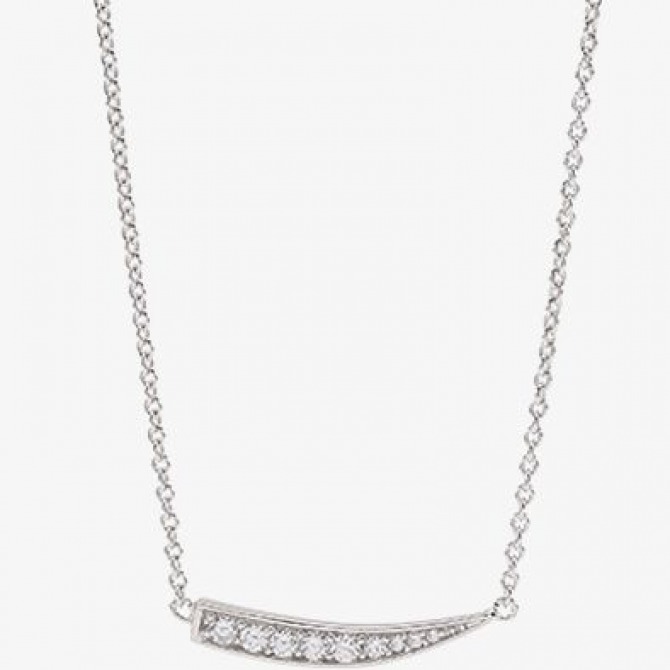 Pila is a popular ski resort in the Aosta Valley of Italy, combining snow covered peaks with verdant green valleys. Sif took inspiration from the slopes for her gently curving Pila range. Curving gently like the most serene of piste, this piece features eight crystals in gradually ascending size for a smooth sublime finish. - Rhodium plated Sterling Silver - White Cubic Zirconia - Graduated design - Curb chain with Sif Jakobs logo on 4cm extender.