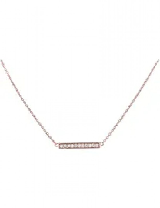 Made of sterling silver with 18ct rose gold plate this 30mm fixed bar at the centre of this necklace is set with a sparkling lineup of white cubic zirconia, on an adjustable to 17"/43cm chain,