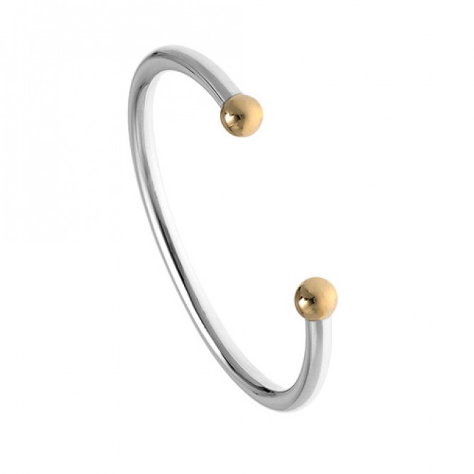 Sterling Silver Round Torc Bangle with 9ct Gold Beaded Ends