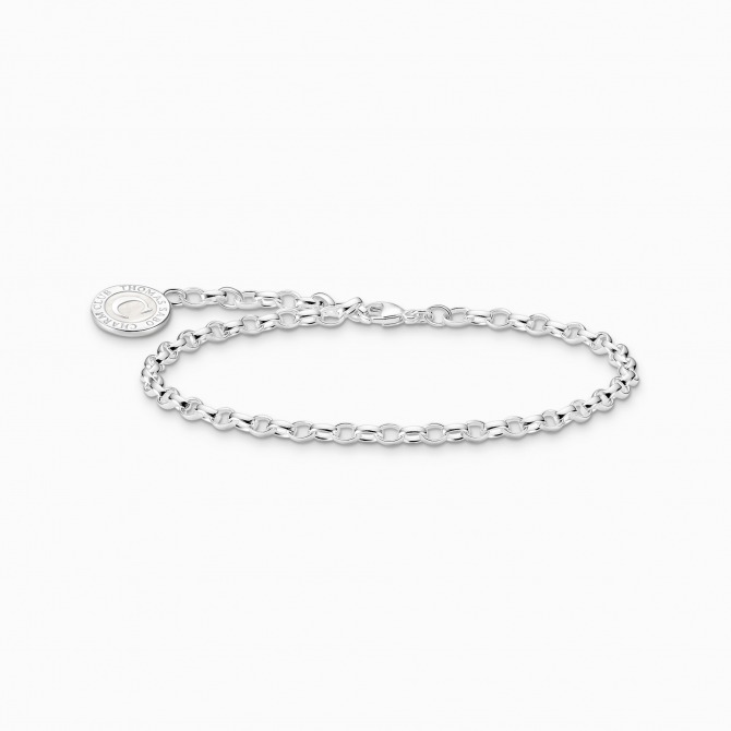 Charm Carrier: The charm bracelet is made of high-quality, polished 925 Sterling silver. Attached to its end is a round THOMAS SABO Charm Club Charmista Coin that is decorated with shimmering cold enamel in white. The wide anchor-style links allow combinations with any number of charm pendants. The link bracelet is available in lengths of 13, 15, 17 and 19 cm.
