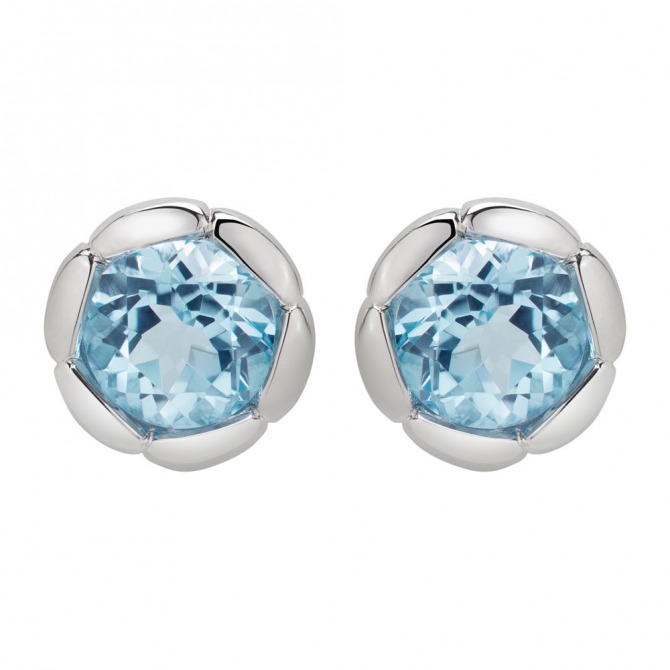 Sterling silver stud earrings set with blue topaz. Perfect for a December birthday!