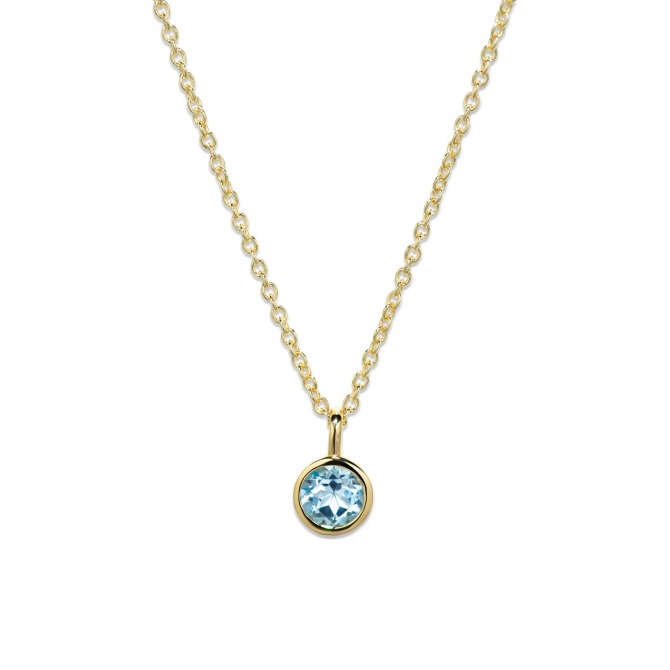 This classic pendant is crafted in sterling silver with gold plate and set with a Blue Topaz, adding a splash of colour to your outfit. Perfect for a December Birthday!